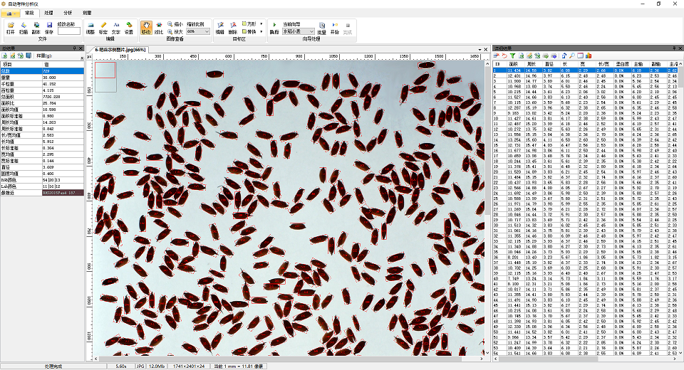 4、可根據(jù)實際需求自行創(chuàng)制一鍵自動分析向?qū)?,適用于水稻、小麥、玉米、豆類、油菜籽、瓜子、蔬菜籽等各類農(nóng)作物的自動精確考種、各類糧庫的蟲口自動計數(shù),以及出苗數(shù)、均勻度分析,顯示和輸出計數(shù)結(jié)果。